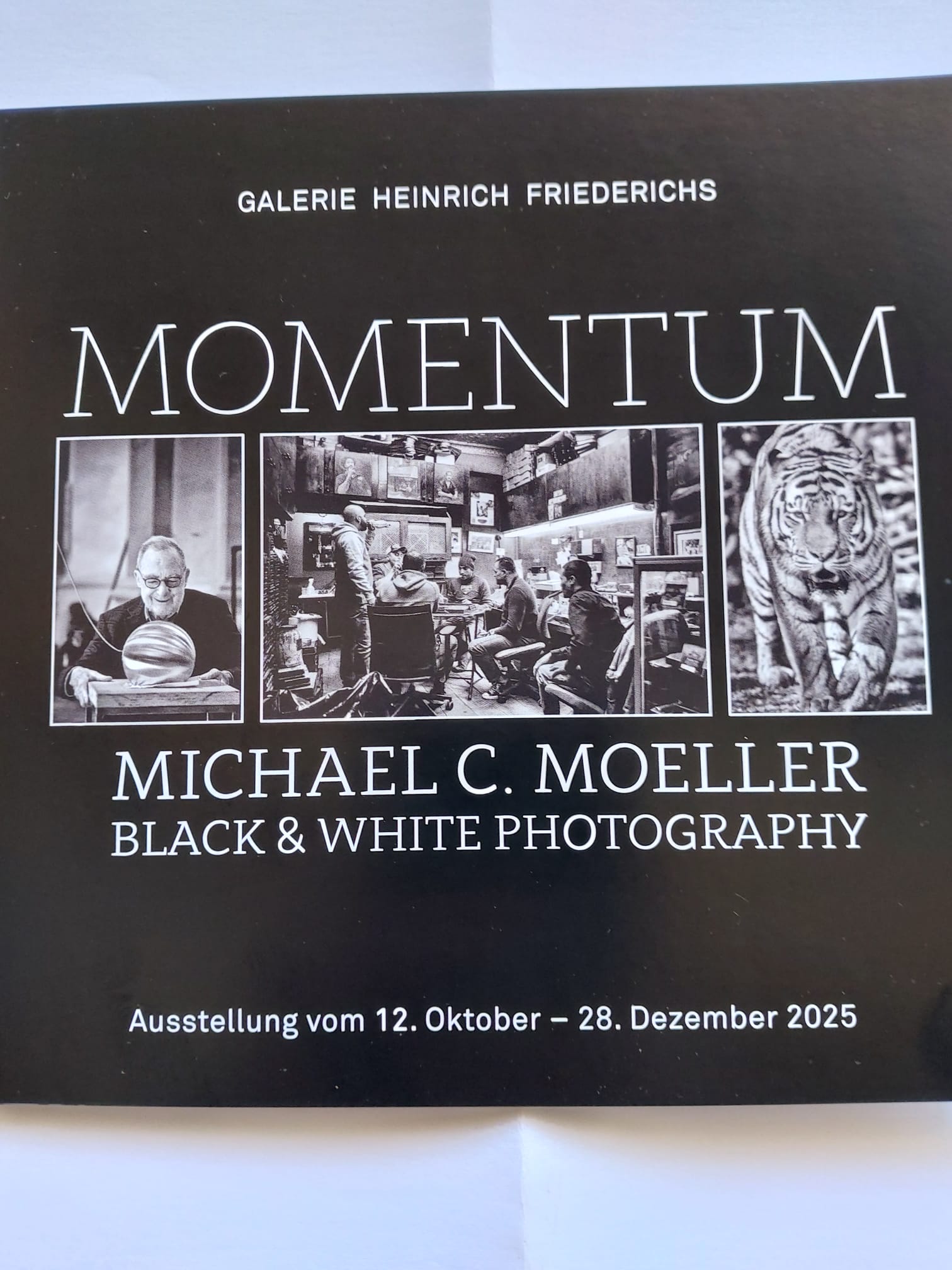 Doch alle Besucher waren herzlichst willkommen zu einer kleinen entspannten KUNSTPAUSE zwischen Oktoberfest und Halloween. Es gab vom FOTOGRAFEN MICHAEL C. MOELLER interessante Erläuterungen für die großartigen SCHWARZWEISS-FOTOS und die besondere Bedeutung des Wortes M O M E N T U M, das den besonders wichtigen Augenblick meint, an dem der Fotograf den Auslöser an seiner Kamera betätigt – sekundengenau, präzise und blitzschnell.